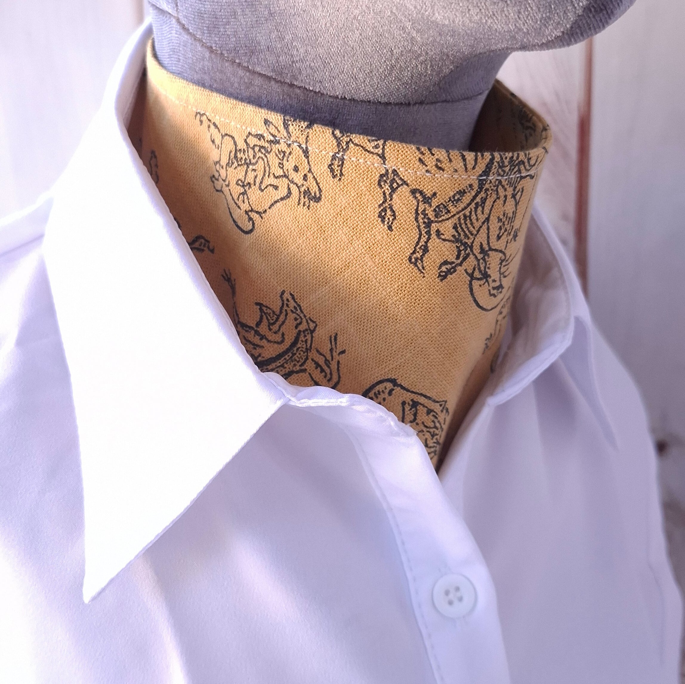 首は体温調整するのに重要な箇所ですので少しでも通気性が良く重なる分量が少なくても形が落ち着くようにこの形になりました。