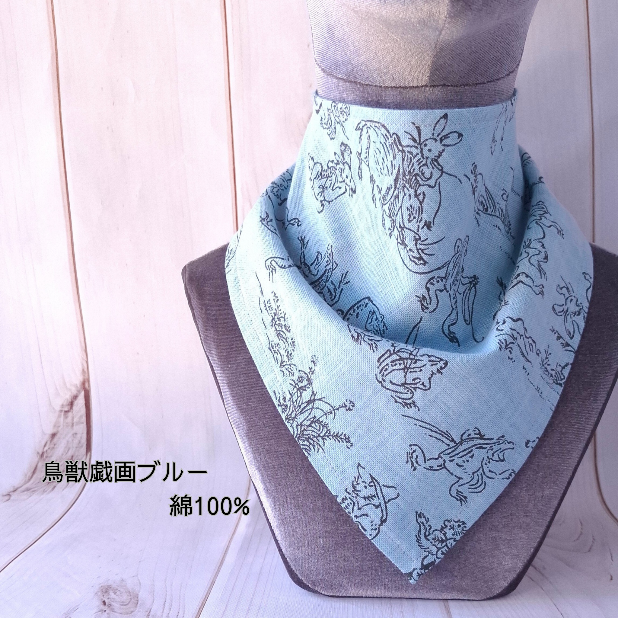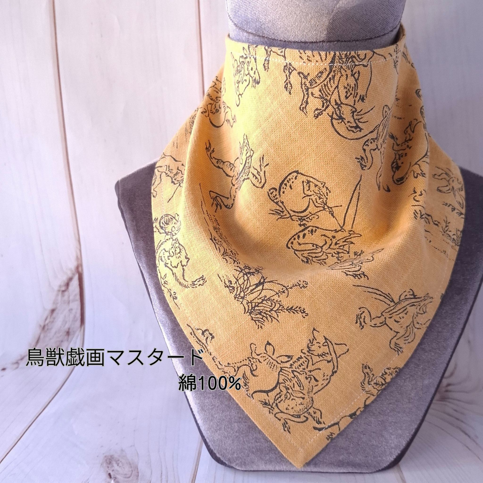 *簡単ネックスカーフ|鳥獣戯画(全3色)中厚地